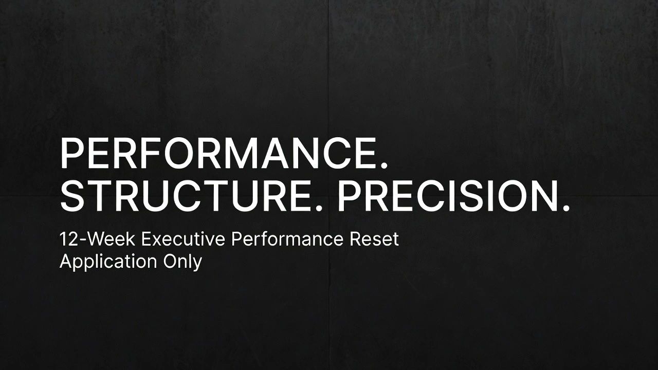 The Executive Performance Reset is a 12-week structured performance rebuild for men operating under sustained responsibility. Intake begins May 1, 2026 Applications are reviewed personally. If aligned, you will receive a private invitation to a 30-minute diagnostic.